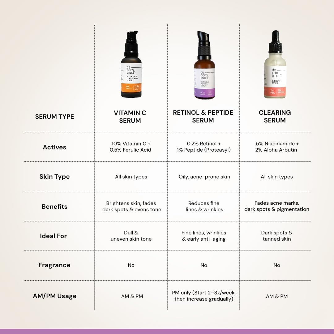 Improve skin texture and reduce early signs of aging with Deconstruct 0.2% Retinol Face Serum, a beginner-friendly retinol formula designed to boost skin renewal, smooth fine lines, and refine pores. Powered by 0.2% Retinol, this serum supports collagen production and accelerates cell turnover for clearer, firmer, and more youthful-looking skin.