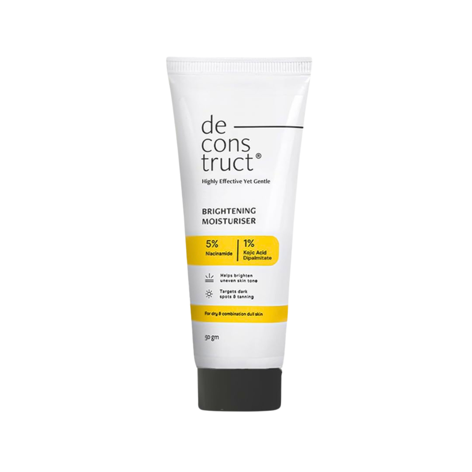 Deconstruct Niacinamide Brightening Moisturizer is a powerful yet lightweight daily moisturizer designed to visibly reduce dark spots, improve uneven skin tone, and deliver long-lasting hydration. Formulated with 5% Niacinamide, 1% Kojic Acid, and 5% Vitamin C, it works at multiple levels to brighten skin, control oil, and strengthen the skin barrier—without feeling heavy or greasy.