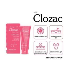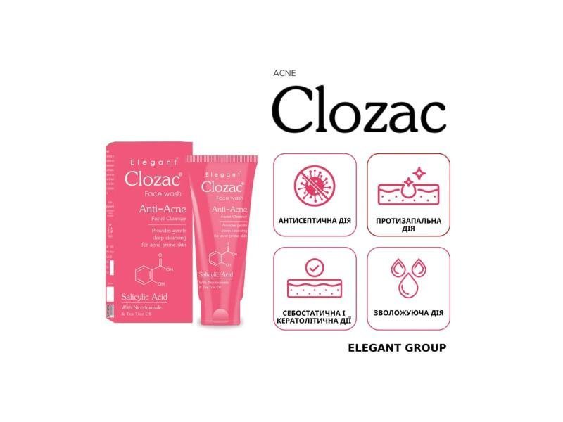 Elegant Clozac Acne Care Facewash is a gentle cleanser. Its contents like Tea Tree Oil & Salicylic Acid are anti-acne and oil control agents. This Beta-Hydroxy Acid is a highly effective superficial peeling agent and pore cleanser.