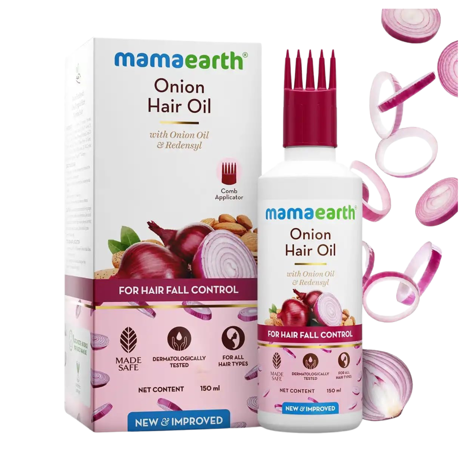 Mamaearth Onion Hair Oil is a powerful, natural solution to reduce hair fall, boost hair growth, and improve overall scalp health. Enriched with the goodness of onion seed oil, redensyl, castor oil, and almond oil, this non-sticky and non-greasy formula penetrates deeply to strengthen hair from the roots and nourish each strand.