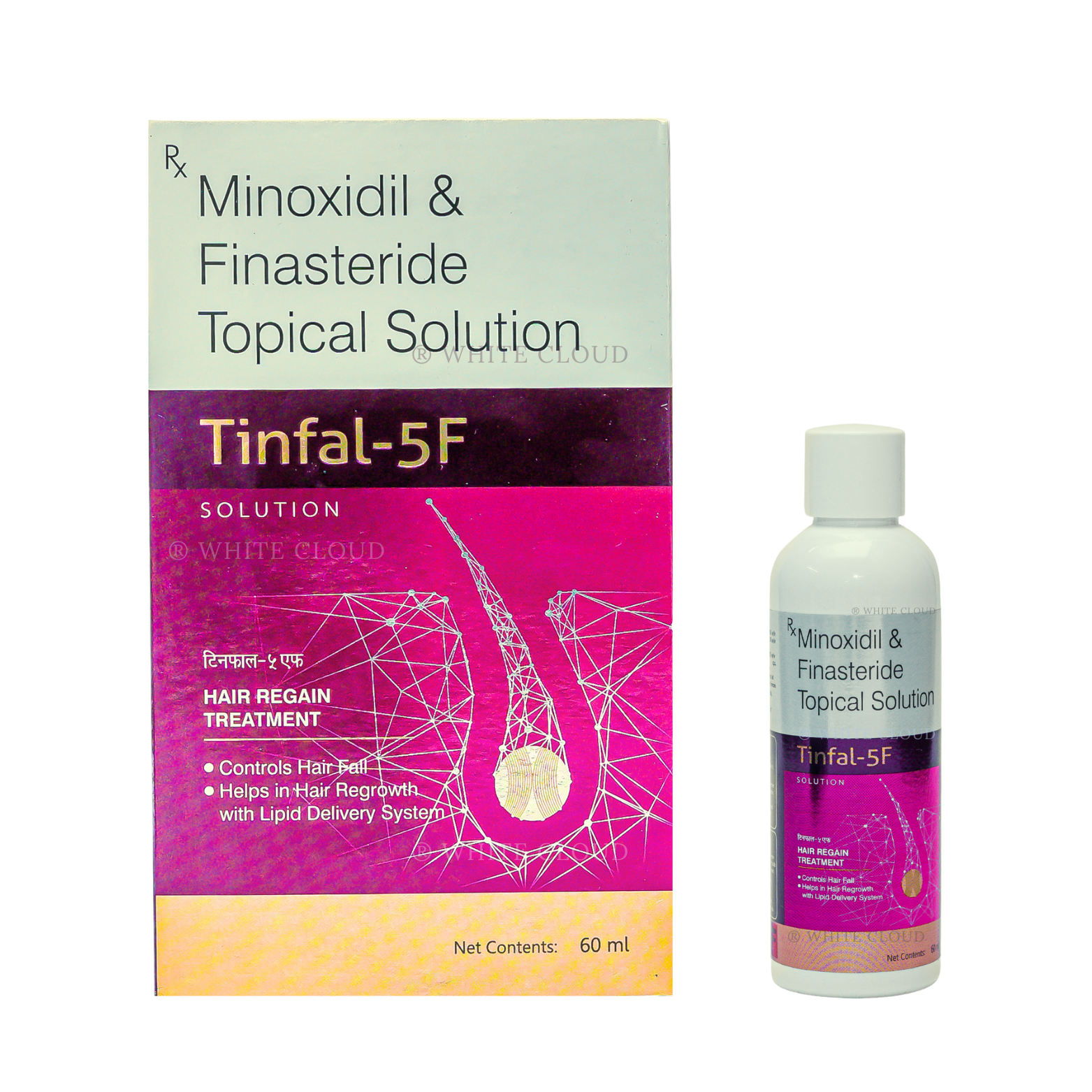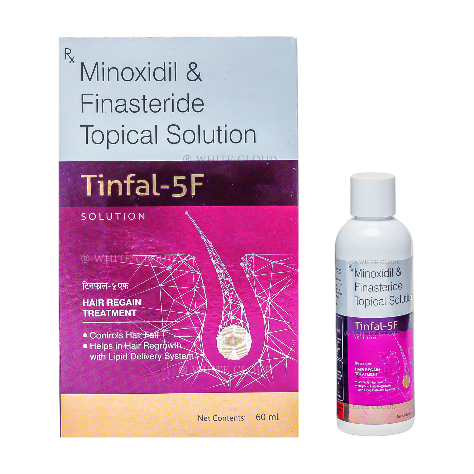 Tinfal 5F is a topical solution that contains minoxidil and finasteride. It is used to treat male pattern baldness (androgenic alopecia). Designed for direct scalp application, it works at the follicle level to help strengthen roots and promote healthier, denser-looking hair with consistent use.